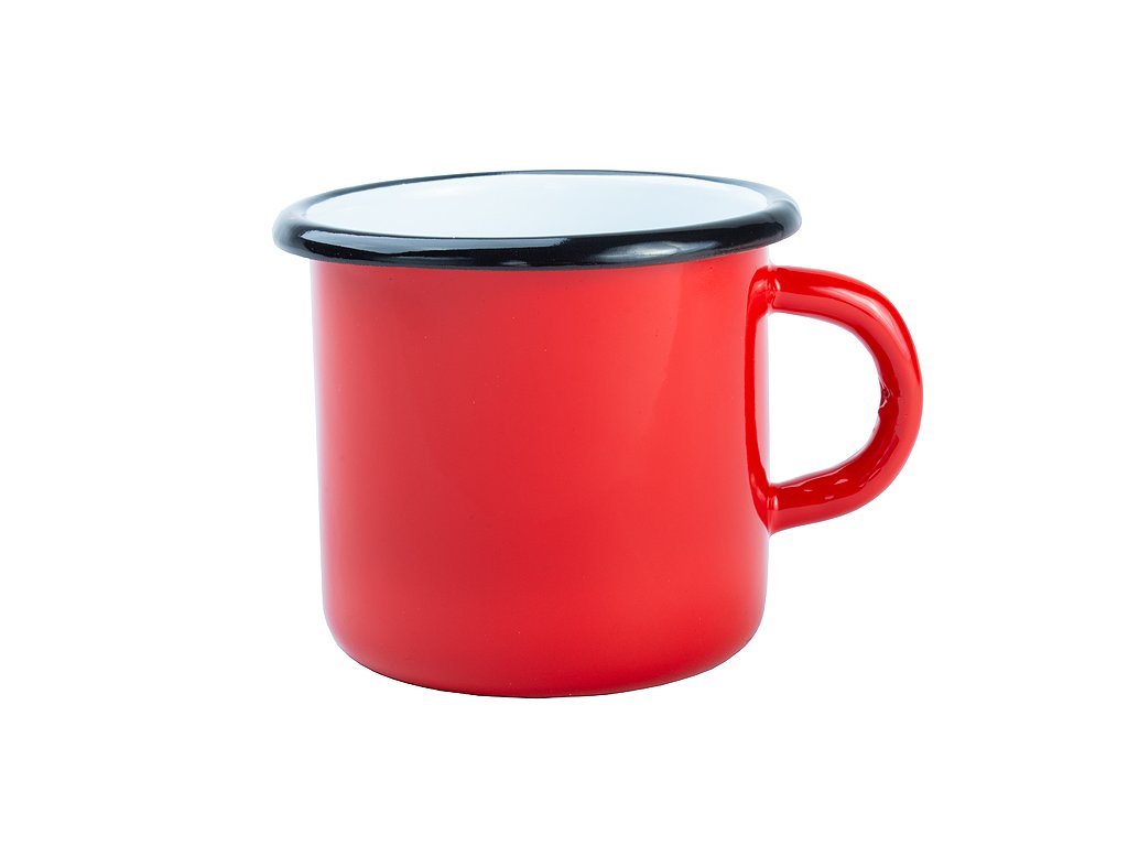 Exklusivní barevný plecháček s černým lemem a povrstvením vhodným pro potisk bílým tonerem nebo černou barvou pomocí barevné nebo černobílé laserové tiskárny. Oproti čínským plecháčkům má méně vad a je o 20% těžší tzn. Je použito více materiálu. Díky těmto vlastnostem se ouško po nalití horké tekutiny zahřívá minimálně. Díky Evropské produkci jsem schopni pružně doplňovat skladovou dostupnost a nabídnout i neobvyklé barevné varianty. Např. Žlutý vnitřek a černá matná zvenku. Tvar lemu umožňuje tisk blíže okraji. Použitá organická barva neobsahuje těžké kovy ani jedovaté látky.Barva: Červená