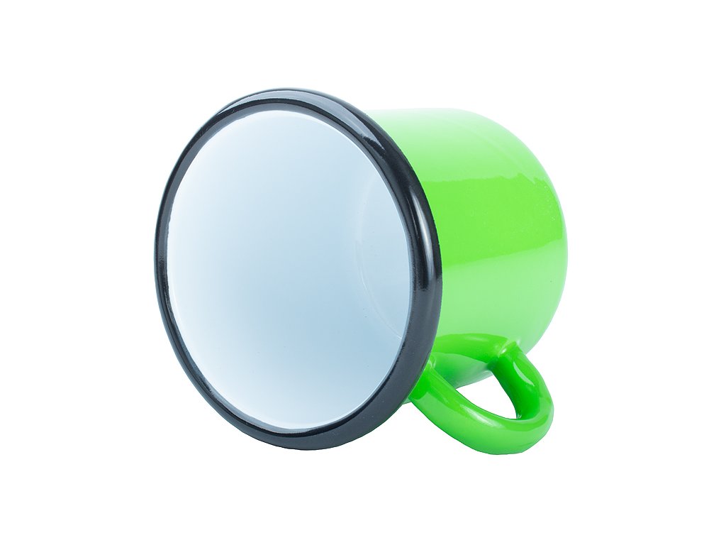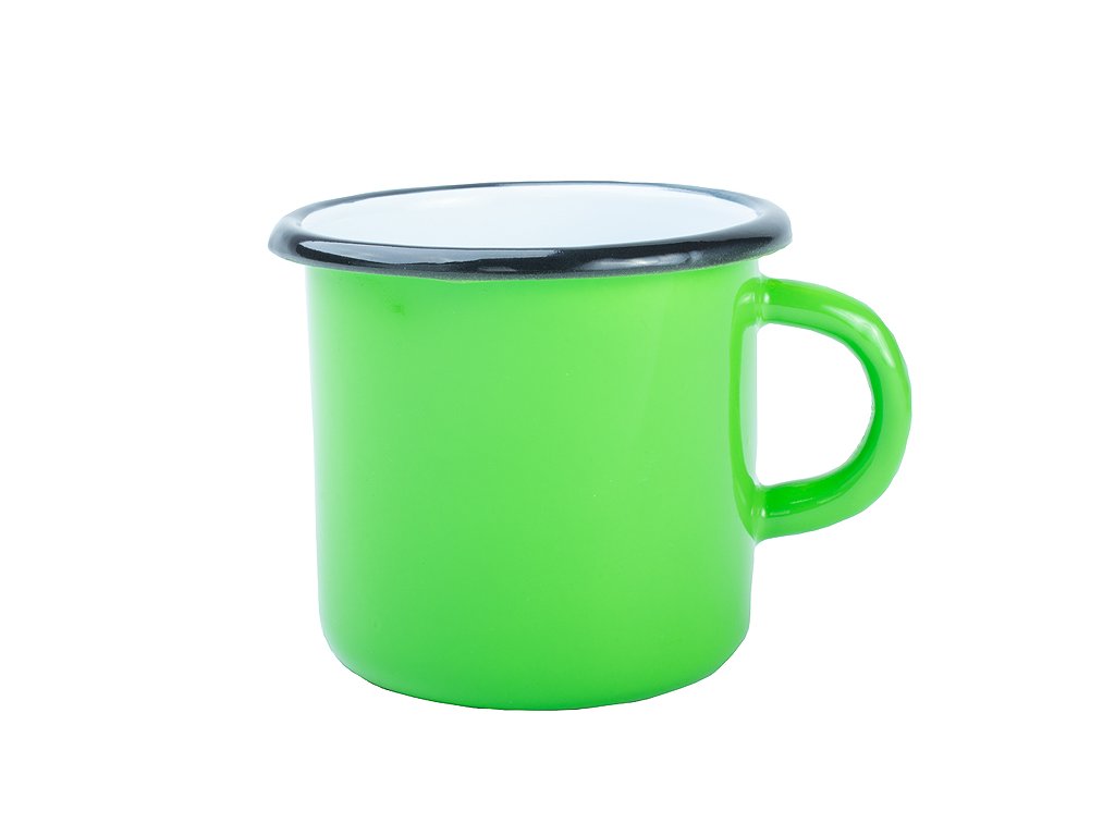 Exklusivní barevný plecháček s černým lemem a povrstvením vhodným pro potisk bílým tonerem nebo černou barvou pomocí barevné nebo černobílé laserové tiskárny. Oproti čínským plecháčkům má méně vad a je o 20% těžší tzn. Je použito více materiálu. Díky těmto vlastnostem se ouško po nalití horké tekutiny zahřívá minimálně. Díky Evropské produkci jsem schopni pružně doplňovat skladovou dostupnost a nabídnout i neobvyklé barevné varianty. Např. Žlutý vnitřek a černá matná zvenku. Tvar lemu umožňuje tisk blíže okraji. Použitá organická barva neobsahuje těžké kovy ani jedovaté látky.Barva: Zelená základní dle Pantone 361C