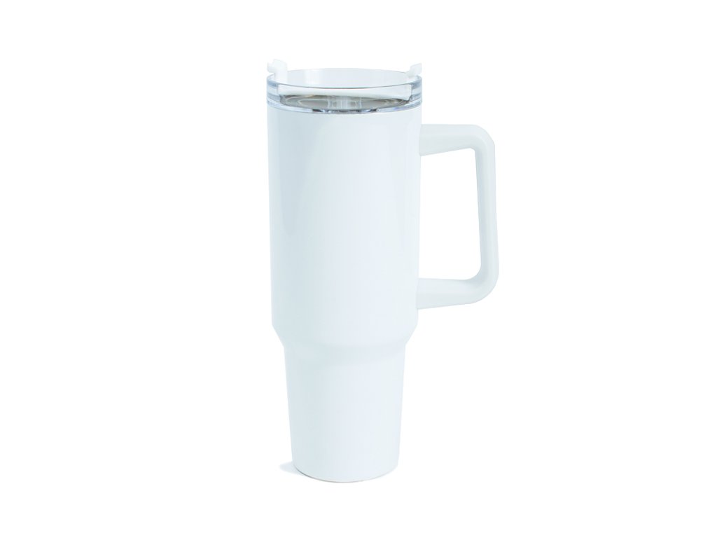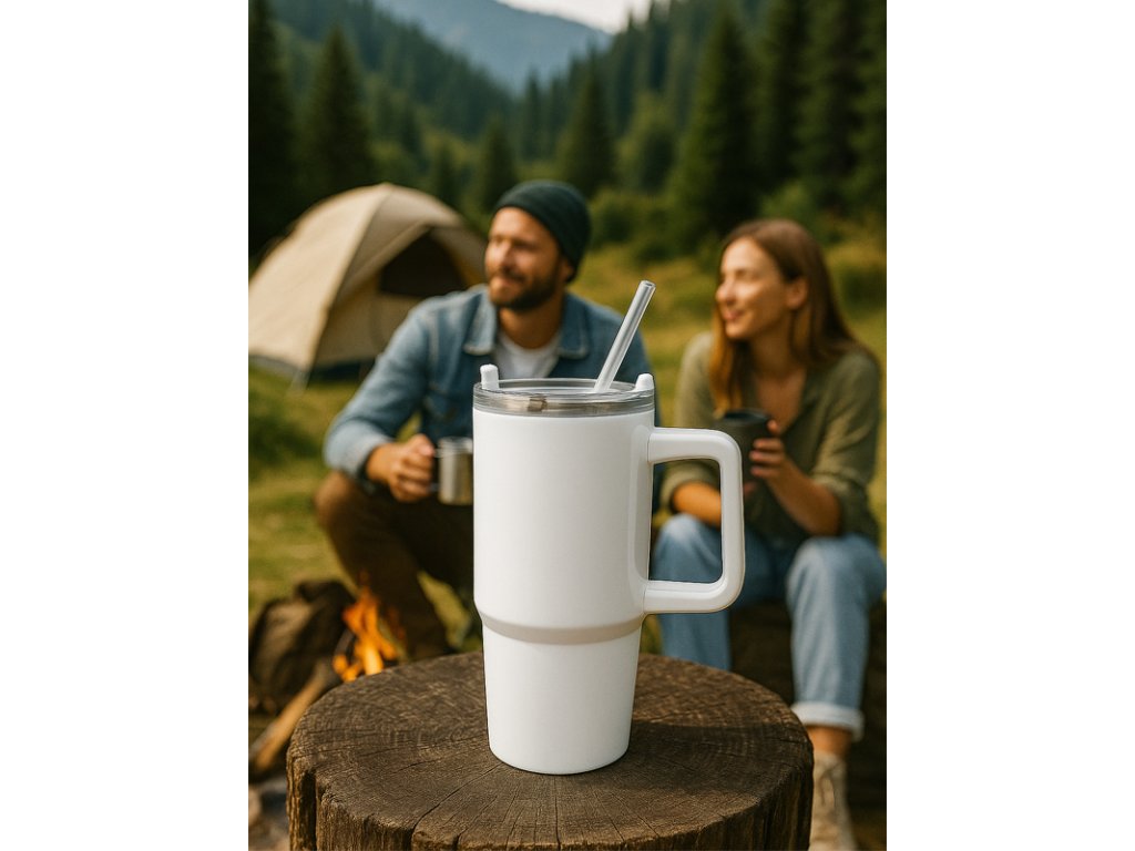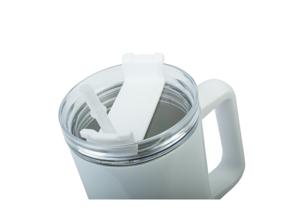 Bílý cestovní hrnek s plastovým brčkem - 1200 ml