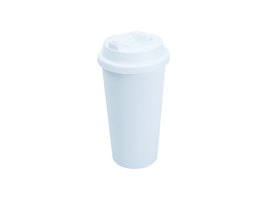 Cestovní polymerový dvouplášťový hrnek s bílým víčkem