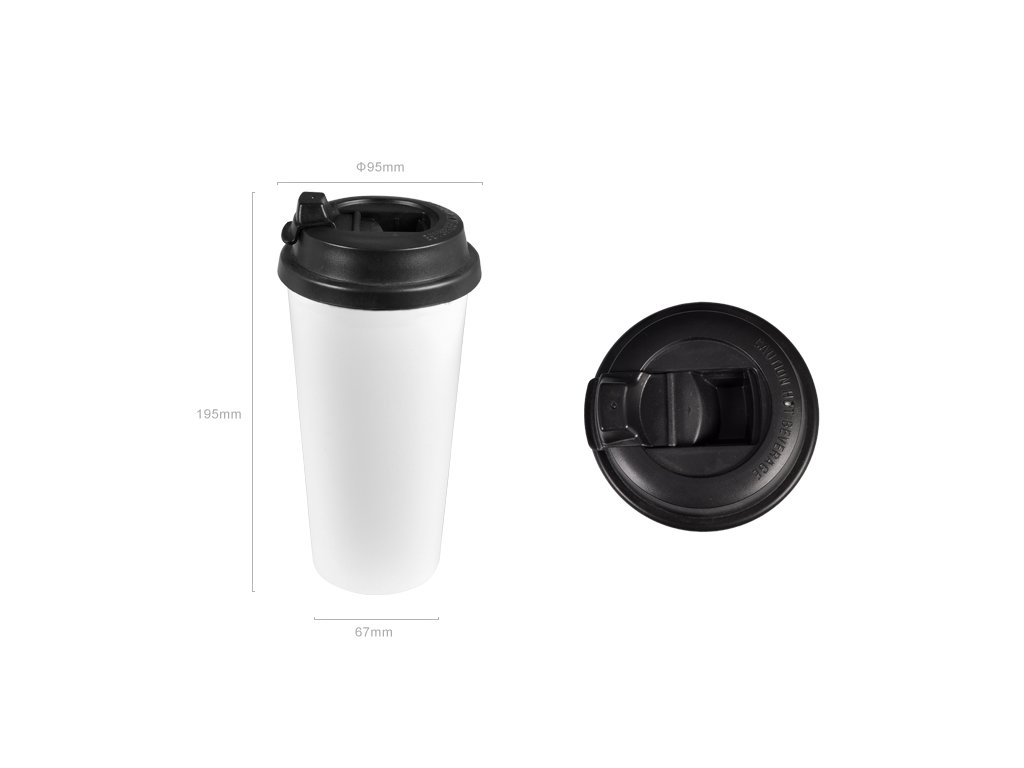 Cestovní polymerový dvouplášťový hrnek s černým víčkem