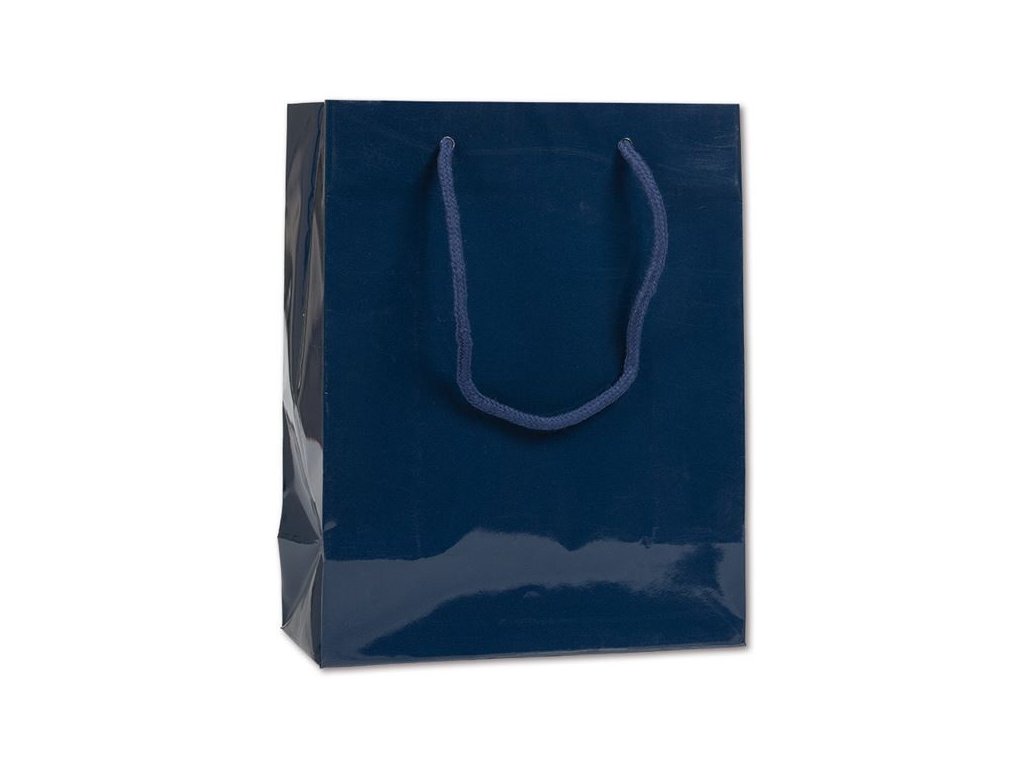 - Jednobarevná dárková papírová taška, ucha z barevné bavlněné sňůrky