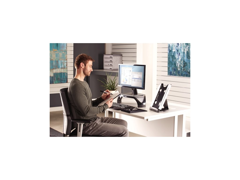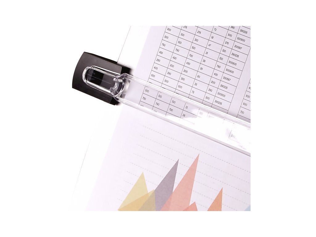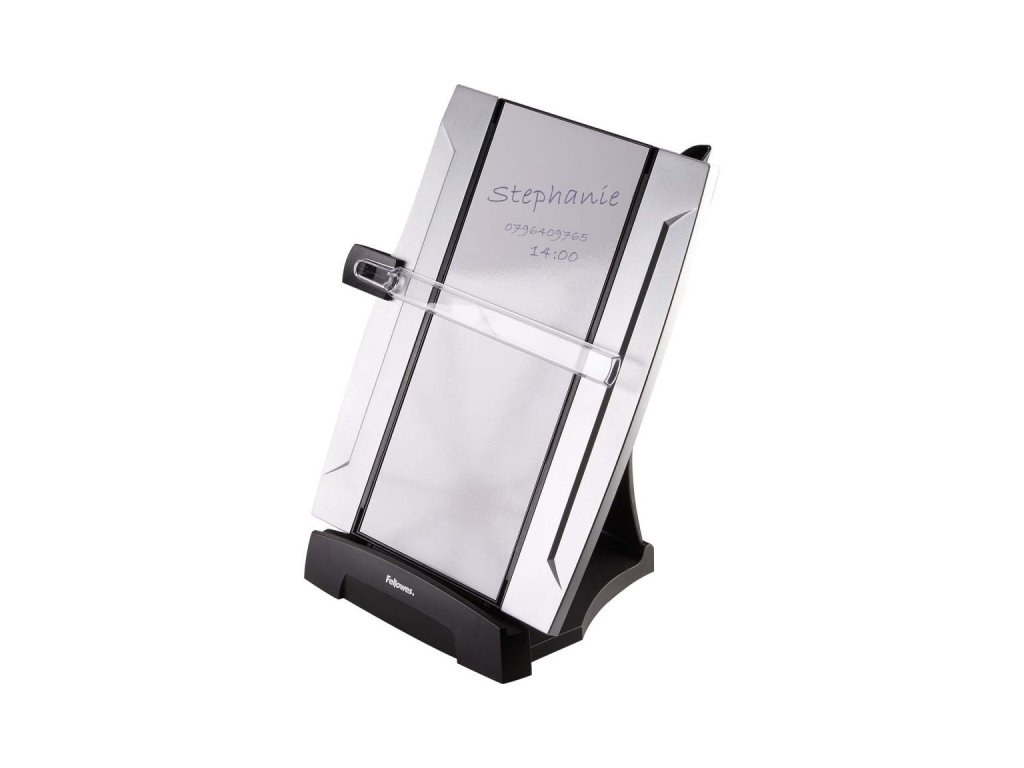 • součástí je MEMO BOARD pro psaní poznámek suchým stíratelným fixem• speciální pravítko usnadňuje používání • skládací, lze jednoduše uložit do zásuvky nebo tašky na notebook • moderní a stylový design, materiál plast • vybaven klipsem, který udrží až 150 listů velikosti A4 • plynule nastavitelný úhel sklonu • připojenou podložku je možné využít k zaznamenání poznámek • výsuvný panel s klipem na dokumenty až do velikosti A3Doplňkové parametry