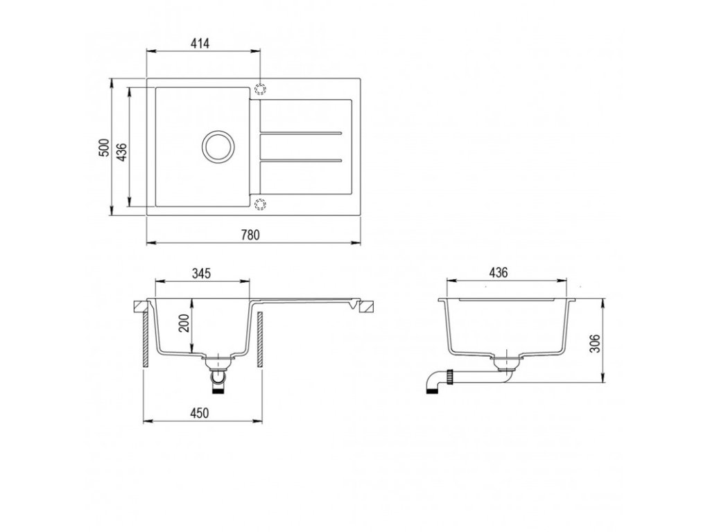 Tesa 780.0E dodávaný společností Aquasanita v ideálním rozměru 50 x 78 cm a hloubkou vaničky 20 cm. Hloubka vaničky je dostatečná na běžné umývání velkých plechů na pečení nebo objemných hrnců. Rovněž praktická je i odkapová část dřezu. Do dřezu je možno vyvrtat otvory na baterii, excentrické ovládání nebo na dávkovač saponátu.