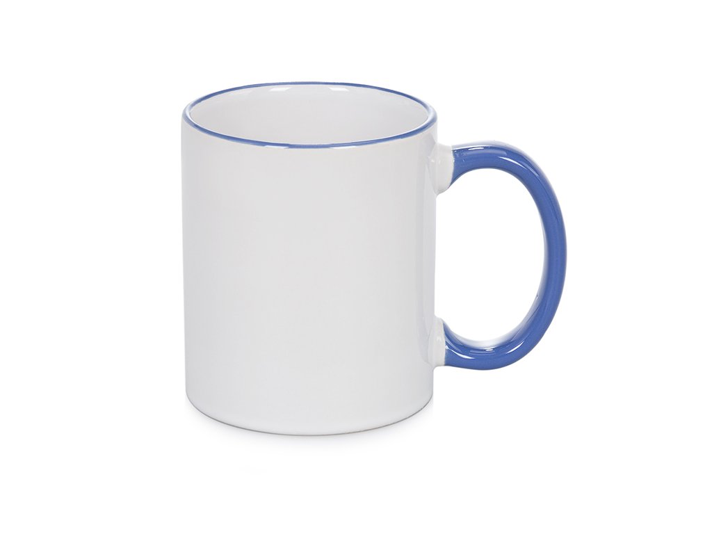 Keramický bílý hrnek s barevným lemem a uchem určený pro potisk sumblimací.Objem: 11 Oz / 325 ml Parametry pro potisk: Aplikační teplota: 180oC Čas: 20 vteřin ( výtisky z tiskáren Sawgrass a Ricoh )