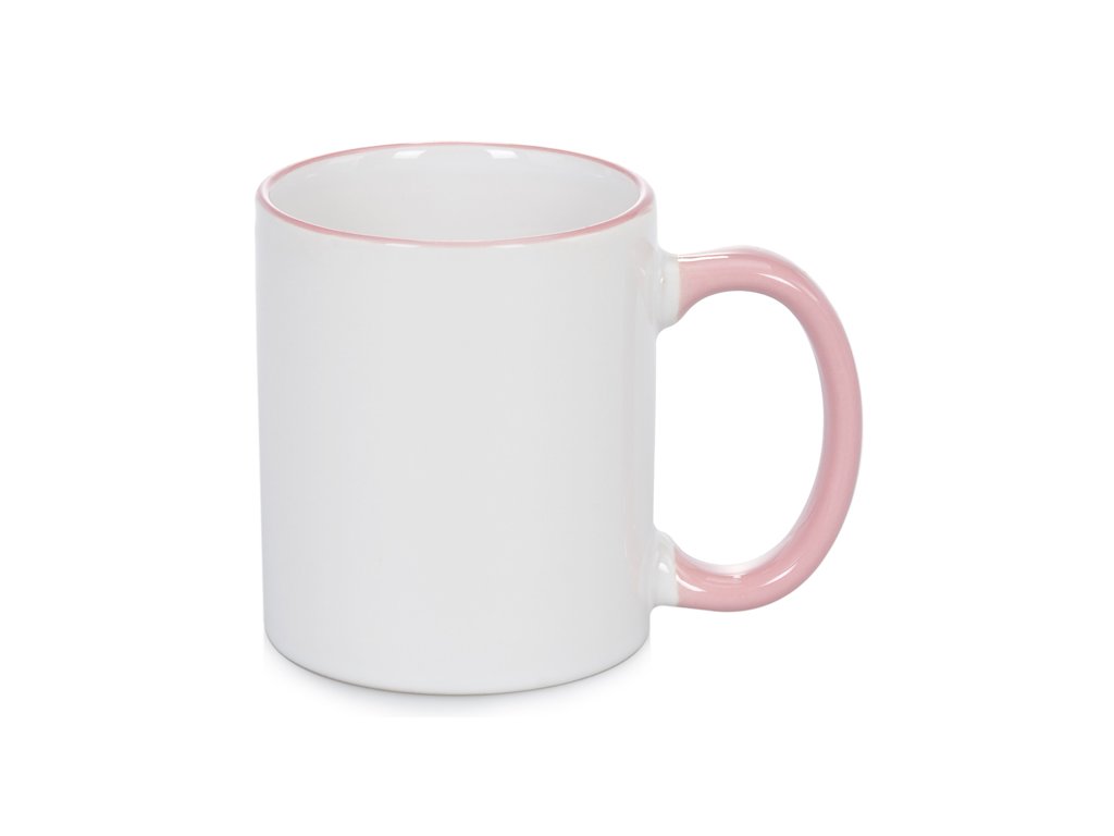 Keramický bílý hrnek s růžovým lemem a uchem. Špičkové barevné podání a dlouhá životnost při používání v myčce.Určený pro potisk sumblimací. Průměr: 82 mm Výška: 95 mm Parametry pro potisk: Aplikační teplota: 180oC Čas: 20 vteřin ( výtisky z tiskáren Sawgrass a Ricoh )