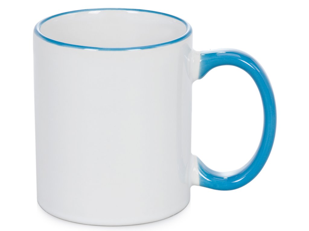 Keramický bílý hrnek s barevným lemem a uchem. Špičkové barevné podání a dlouhá životnost při používání v myčce.Určený pro potisk sumblimací. Průměr: 82 mm Výška: 95 mm Parametry pro potisk: Aplikační teplota: 180oC Čas: 20 vteřin ( výtisky z tiskáren Sawgrass a Ricoh )