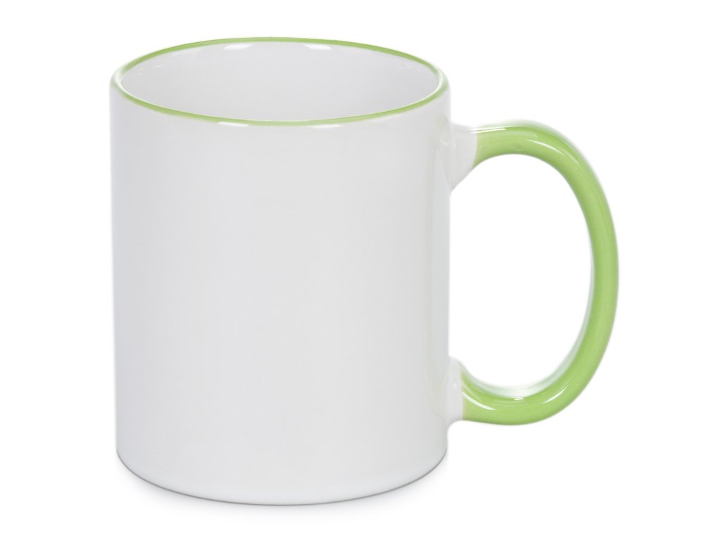 Keramický bílý hrnek s barevným lemem a uchem. Špičkové barevné podání a dlouhá životnost při používání v myčce.Určený pro potisk sumblimací. Průměr: 82 mm Výška: 95 mm Parametry pro potisk: Aplikační teplota: 180oC Čas: 20 vteřin ( výtisky z tiskáren Sawgrass a Ricoh )