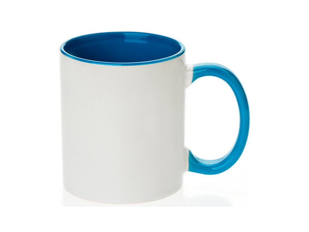 Hrnek bílý- vnitřek a ucho nebesky modrá
