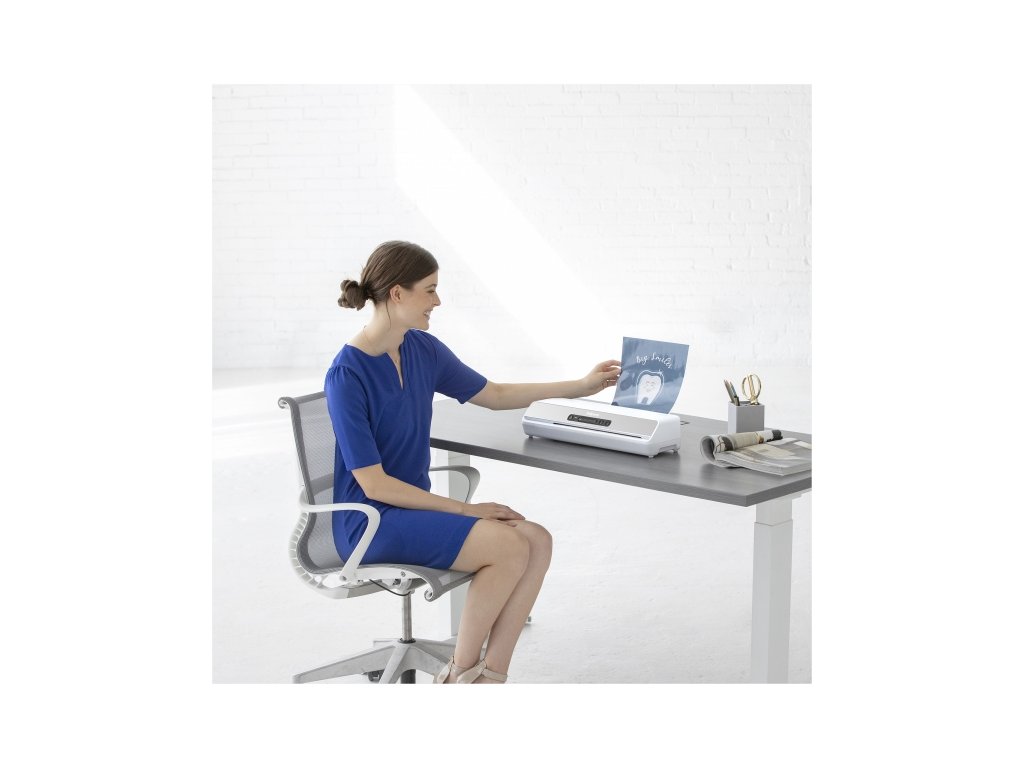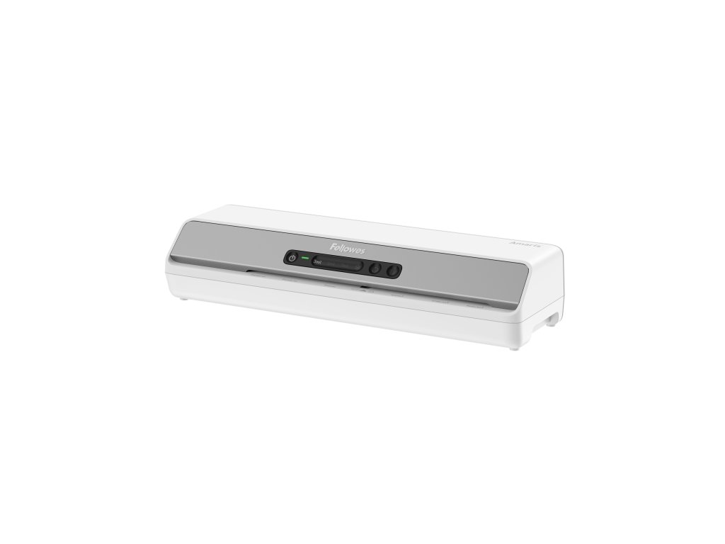 Fellowes laminátor Amaris A3 6-ti laminovacím válci a novým atraktivním designem a inovovaným systémem zrychleného výhřevu. Laminování za cca 1 min od zapnutí. Umožňuje kvalitní laminaci až do formátu A3 v rozsahu 80-175 mic tloušťky laminovacího filmu, včetně laminace fotografií. Max. tloušťka dokumentu 0,6 mm. Je vhodný pro laminaci v kanceláři. Technologie InstaHeat - zrychlený výhřev stroje na pracovní teplotu. Stroj je vybaven unikátním systémem Jam Free, který významně snižuje riziko uvíznutí laminovaného dokumentu uvnitř stroje. Laminátor disponuje systémem pro uvolnění válců a případné zpětné vysunutí laminovaného dokumentu - uvolňovací páčka na zadní části stroje. Prosvětlený LED diodový displej usnadňuje výběr pracovního stavu. 100% JAM FREE - LED indikace chybného podání laminovací fólie InstaHeat – zrychlený výhřev stroje na pracovní teplotu Auto Shut off - automatické vypnutí při nečinnosti, šetří energii, předchází přehřátí Součástí dodávky je startovací sada 10ti laminovacích folií formátu A4 tloušťky 80 mic. Laminátor se automaticky nastaví na laminování 80 mikronů. Pro nastavení 125 mikronů nebo 175 mikronů nebo studeného laminování stiskněte odpovídající tlačítko volby kapsy. Když je laminátor připraven, kontrolka připravenosti se rozsvítí zeleně. Chcete-li za provozu vysunout laminovací fólii z přístroje, stiskněte tlačítko zpětného chodu a držte ho, dokud se fólie zcela nevysune. Tato funkce připomíná uživateli, aby vyčistil válce laminátoru a zabránil tak zaseknutí dokumentu. Zahřátí do pracovního režimu 60 sekund.Doplňkové parametry