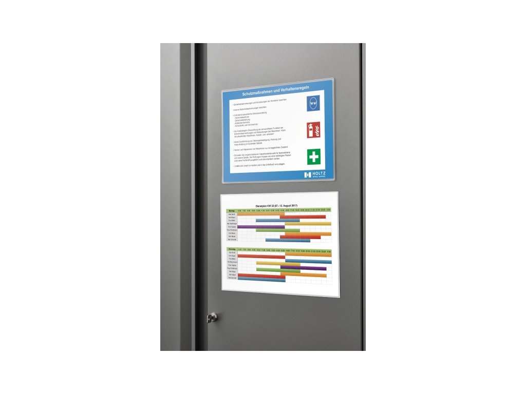 Průhledná magnetická kapsa Magnetofix pro vkládání dokumentů. Kapacita až 15 listů formátu A4 tj. 297 x 210 mm, orientace na šířku. Matný antireflexní povrch průsvitné fólie chrání dokumenty před prachem a poškozením. Po stranách je fólie podlepená magnetickou páskou (1mm). Kapsu tak lze umístit na magnetický povrch tabule nebo vitríny, přilne ke všem železným povrchům. Pod rámečkem vložený dokument lze velmi snadno a rychle vyměnit.Doplňkové parametry