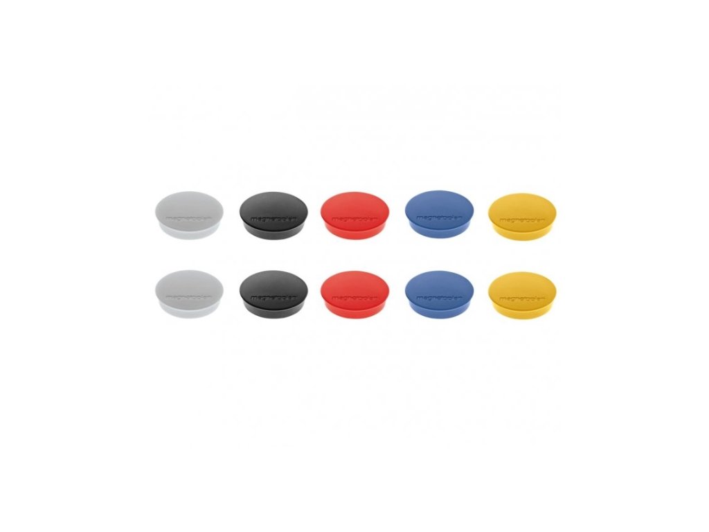 Tvarovaný okraj plastového pouzdra pro snadné uchopení. Přídržná síla cca 0,7 kg. Průměr 30 mm. Tloušťka 8 mm. Balení á 2 ks bílá, černá, červená, modrá, žlutá. Povrch magnetu speciálně upraven teflonovou vrstvou s cílem eliminovat možné poškrábání tabule.Doplňkové parametry