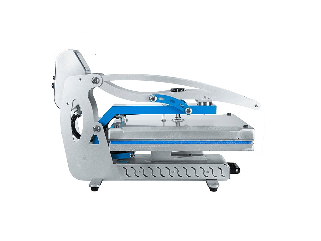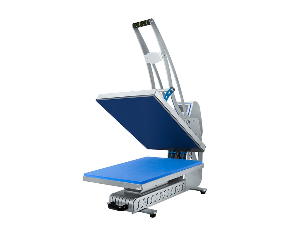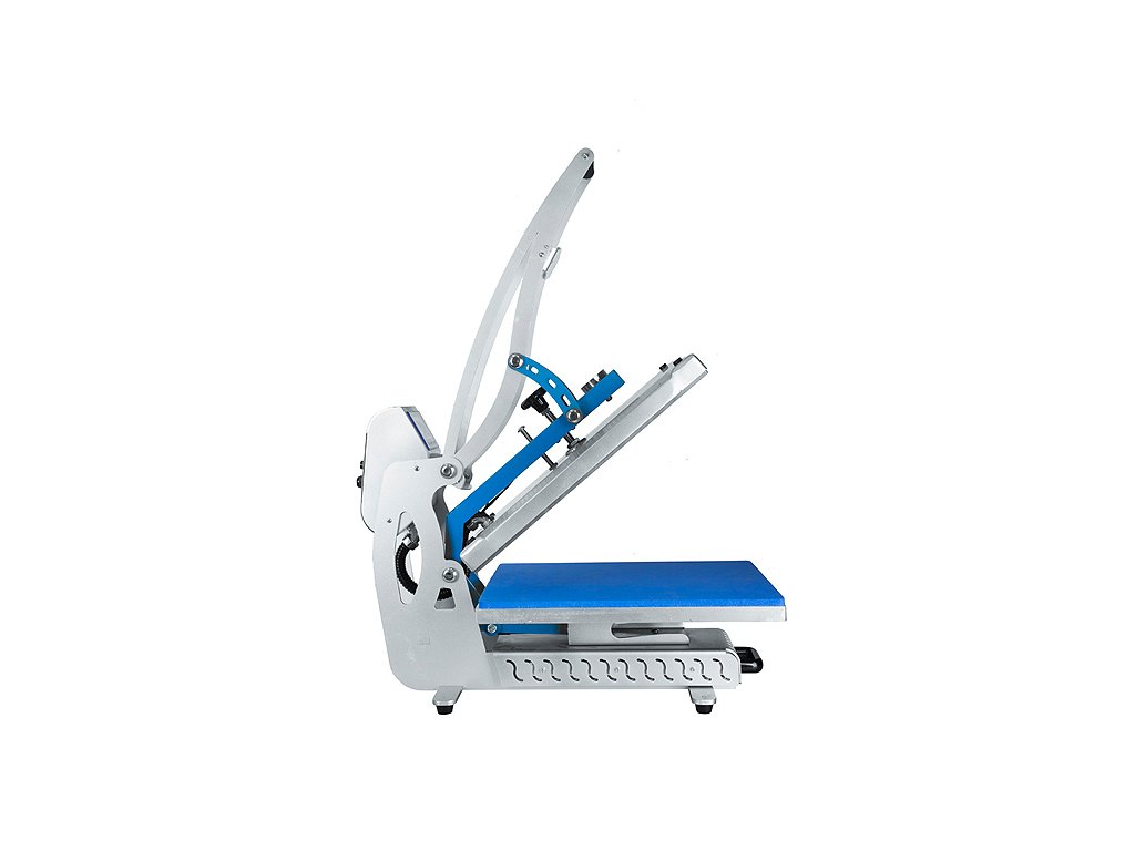 Robustní tepelný lis s automatický otevíráním a výsuvnou pracovní plochou. Inovativní řešení plochého lisu s vertikálním otevíráním. Díky výsuvné pracovní desce se už nepopálíte. Nový mikroprocesor pro řízení teplotu pracoující s přesností 0,5 oC. Topná deska s tepelnou spirálou v jednom bloku. Jednoduchý systém pro výměnu pracovním desek různých velikostí.Rozměr pracovní desky: 40 x 50 cm Nasavení teploty: 0 - 999 vteřin