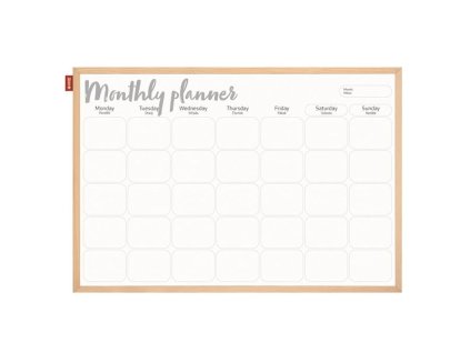 Měsíční plánovací tabule s lakovaným povrchem v hliníkovém rámu, rozměr 60 x 90 cm. Tabule s novým designem. Potisk s universálním anglickým popisem. Hliníkovým rám galvanizovaný stříbrem pro výšší oděruvzdornost.