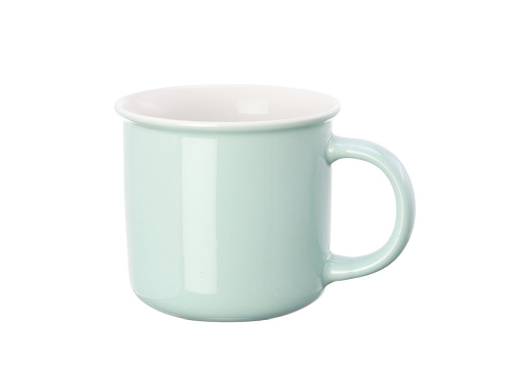 Mintový porcelánový hrnek s bílým lemem imitující smalt