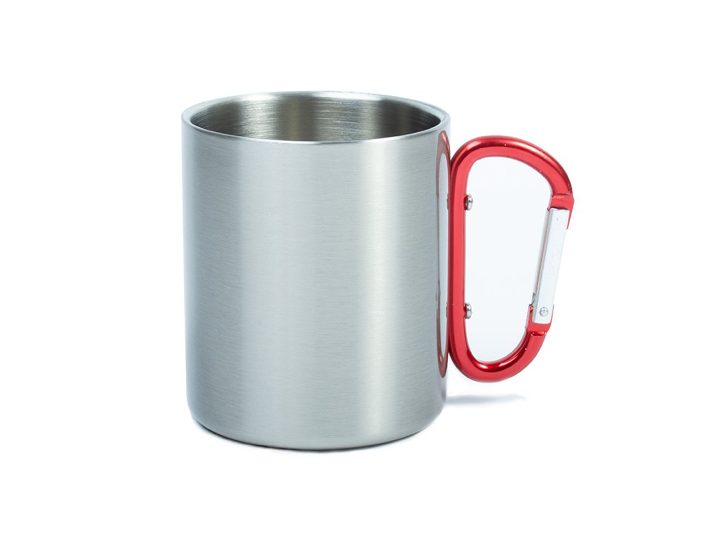 Nerezový dvouplášťový hrnek s červenou rychloupínací karabinou. Ideální pro outdoorové aktivity. Díky dvojité stěně s vakuem udrží déle nápoje teplé či studené a zároveň nepálí do dlaní.Materiál: uvnitř nerez třídy 304 a vně nerez třídy 202