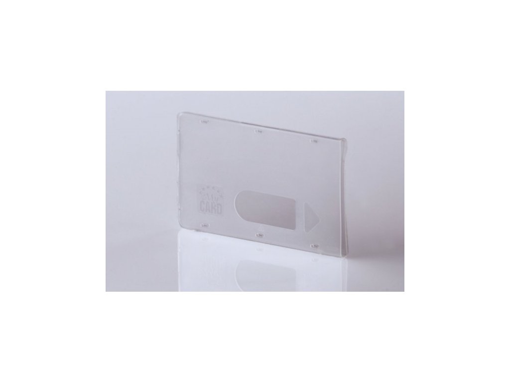 Tuhý plastový obal pro magnetické karty 54 x 86 mm – vodorovný, provedení z průhledného polomatného polyprophylenu. Výhodou obalu je výsek pro snadné čtení kódu. Má zaoblené hrany. Otvor pro snadné vysunutí karty po celé straně. Obal chrání karty nejen proti mechanickému poškození, ale i vlivům UV záření, antistatické elektřiny a v omezené míře i magnetismu. Vnější velikost: výška 56 mm x šířka 89 mm x hloubka 2 mm.Doplňkové parametry