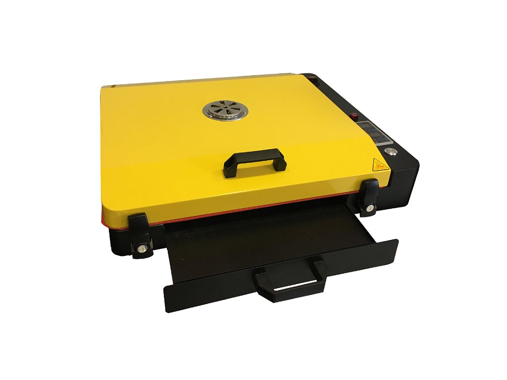 Pec pro tiskárny DTF s nastavením teploty a času. Je vyrobena tak, aby se dala snadno ovládat bez potřeby odborného školení. Model je robustnější (18 kg) , stabilní a odolný. Lze jej tedy bezpečně provozovat v různých pracovních podmínkách. Ohřev je řešen infra lampami, které zajištují rychlejší nahřátí a rovnoměrnější rozložení teploty.Nastavení teploty: 0 - 150oC