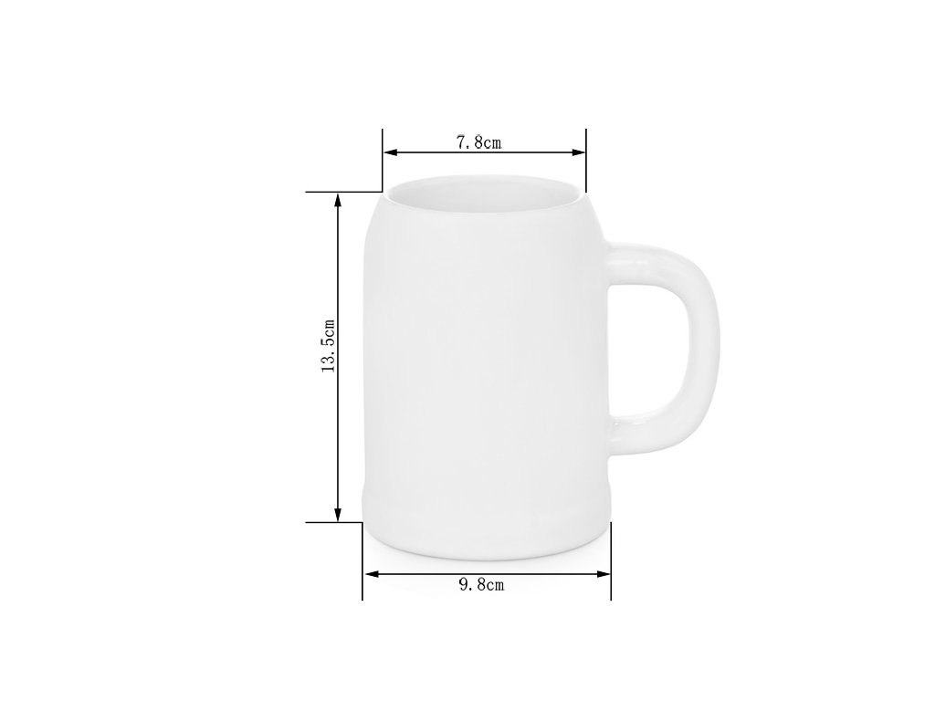 Pivní korbel určený pro potisk sublimační technologií. Tento elegantní 500 ml džbánek na pivo je jedinečný svým konvergentním designem. Hladké křivky jej odlišují od tradičních pivních korbelů. Je skvělý pro každodenní použití a vhodný pro každou příležitost. Tento půllitr nabízí velkou plochu pro potisk, do které se vejdou barevné obrázky nebo loga společnosti shora dolů. Doporučuje se ruční mytí.Průměr: 98 mm