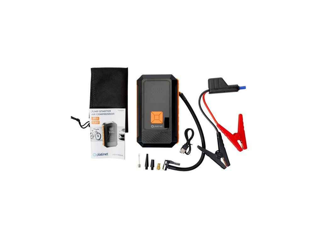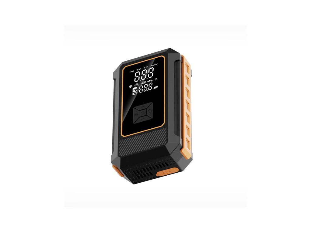Powerbanka PMPBTP s funkcí JUMP STARTER 8000 mAh / 800 A s vestavěným kompresorem 140 PSI a svítilnou. Profesionální startovací nabíječka s kompresorem 8000 mAh je nepostradatelným zařízením pro profesionální řidiče a majitele vozidel. Díky vysokému startovacímu výkonu 800 A a robustnímu výkonu snadno nastartuje i velké benzínové i naftové motory. Vestavěný kompresor s tlakem až 140 PSI zajišťuje rychlé nafouknutí pneumatik, zatímco funkce powerbanky umožňuje nabíjet elektroniku na cestách. Už žádné starosti s vybitou baterií nebo nízkým tlakem v pneumatikách – toto zařízení vám poskytne bezpečnost, pohodlí a klid na cestách. Klíčové vlastnosti produktu: Výkonná baterie 8000 mAh – několik startů vozidel v nouzových situacích Vysoký špičkový výkon 800 A – startuje benzínové motory do 6,0 l a dieselové motory do 3,0 l Kompresor 140 PSI / 9,65 BAR – rychlé nafouknutí pneumatik, míčů, jízdních kol a nafukovacích matrací Kapacita 25 l/min – šetří čas a rychle doplňuje vzduch Multifunkční LCD displej – přehledné provozní parametry Nouzové osvětlení COB 200 lm – ideální v noci a v nouzových situacích USB port 5 V/2 A – nabíjí chytré telefony, tablety a příslušenství Více než 300 nabíjecích cyklů – odolnost a spolehlivost Technické specifikace: Kapacita baterie: 8000 mAh Startovací proud (špička): 800 A Podporované motory: benzínové motory do 6,0 l, dieselové motory do 3,0 l Kompresor: 140 PSI / 9,65 BAR Kapacita kompresoru: 25 l/min Displej: Multifunkční LCD Svítilna: COB LED 200 lumenů, nouzový režim Konektory: USB 5V/2A Životnost: 300 nabíjecích cyklů Rozměry: 114 x 61 x 196 mm Sada obsahuje: startovací kabel, startovací kabely, koncovky pro hustilku, USB kabel.Doplňkové parametry