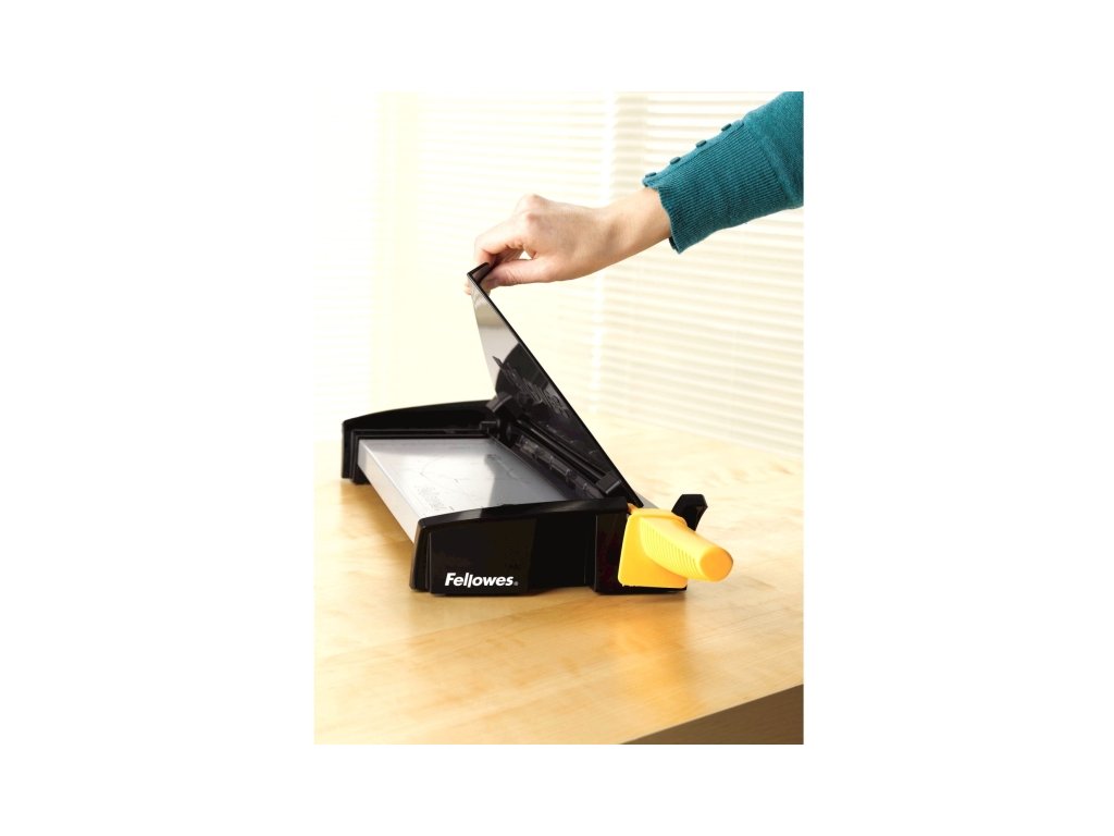 Páková řezačka pro formát do velikosti A3, ideální řešení pro používání v domácnosti a malé až střední kanceláři. Ergonomický, bezpečný a uživatelsky příjemný design. S ručním přítlakem stohu papíru a kvalitním nožem z nerezové oceli, který zajistí hladký a plynulý řez.