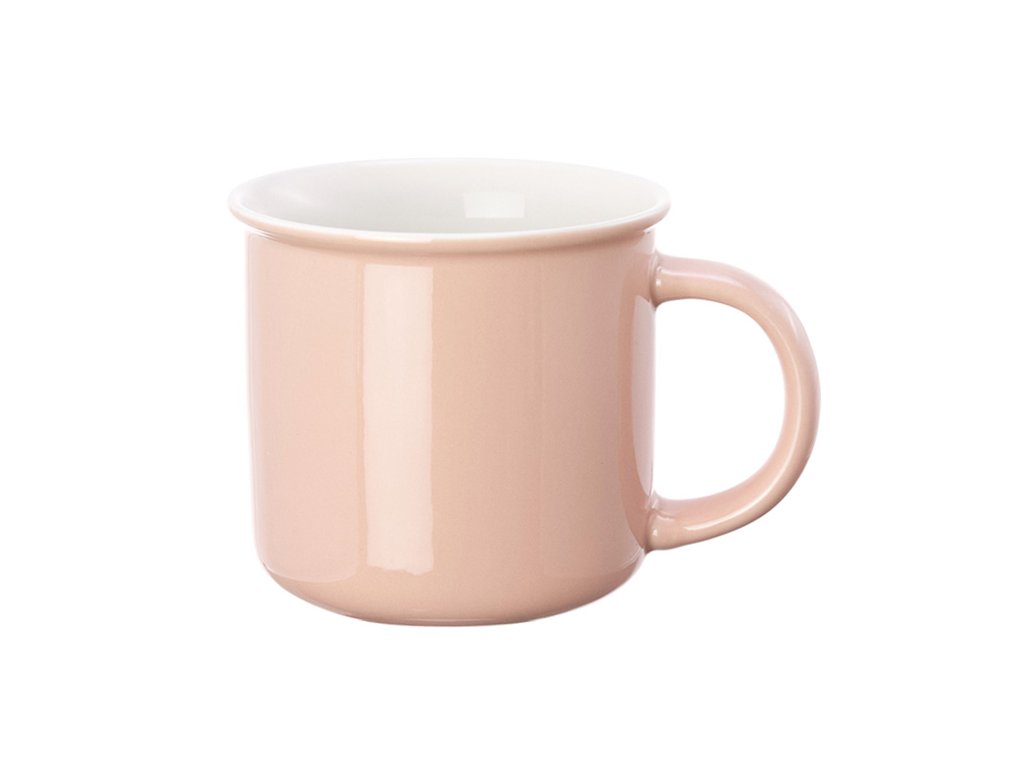 Růžový porcelánový hrnek s bílým lemem imitující smalt
