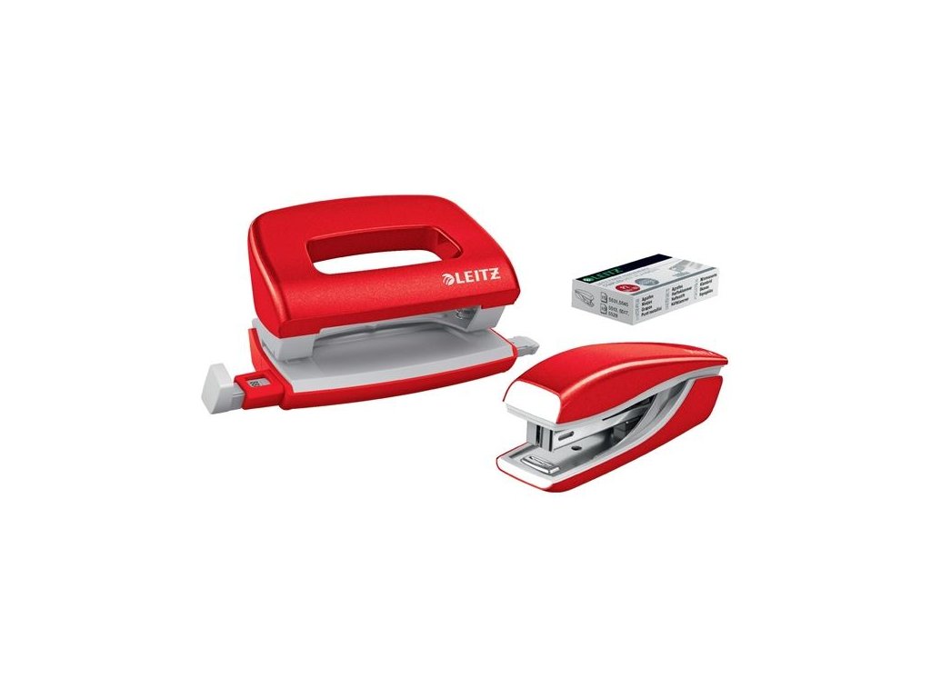 Sada mini sešívačky a děrovačky Leitz WOW - červená