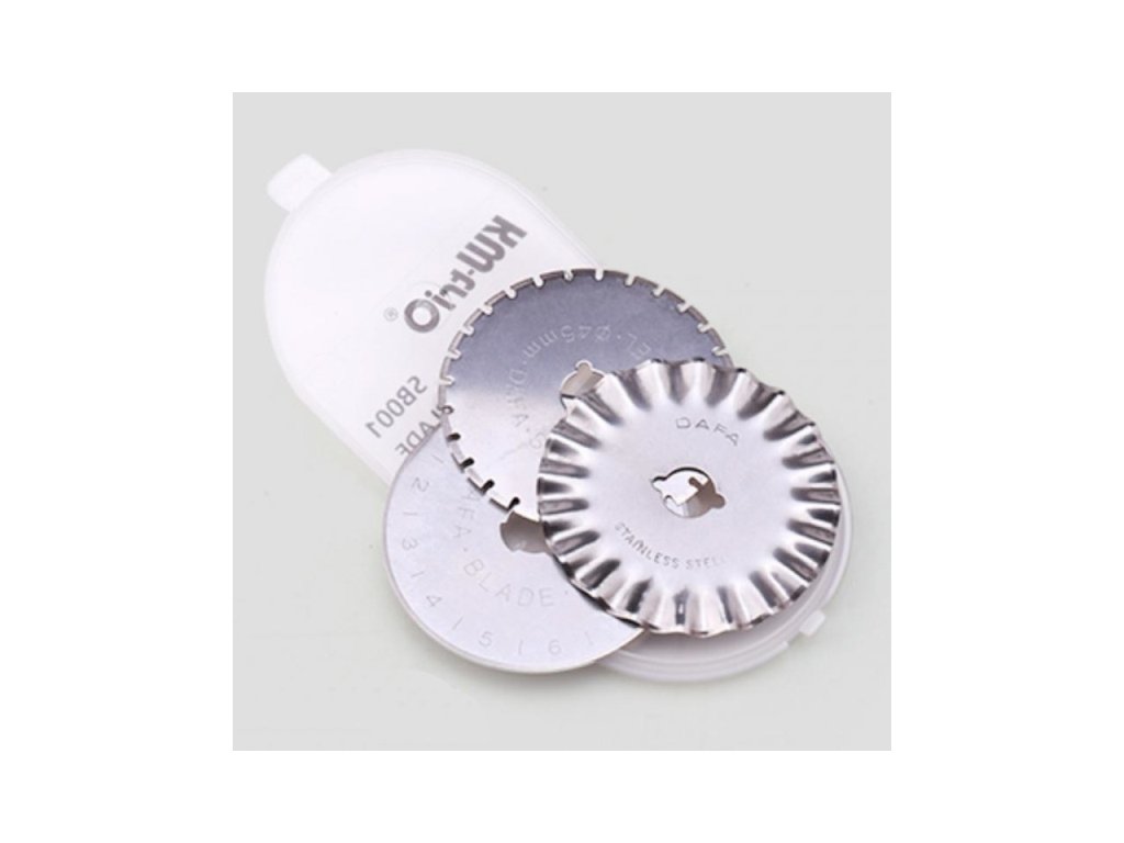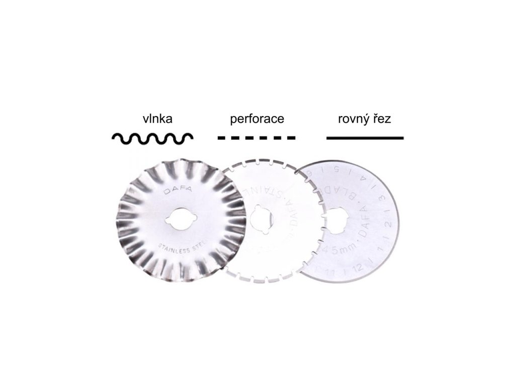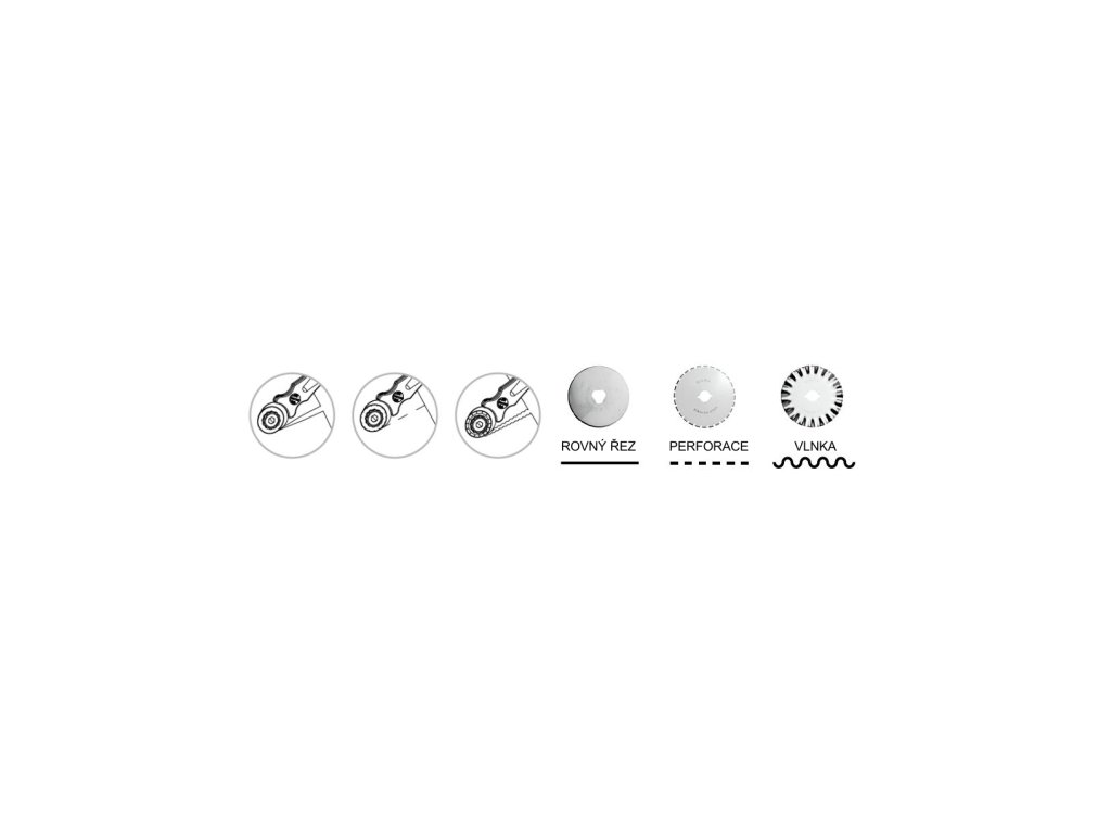 Výměnné čepele - rovný řez, vlnka, perforace pro řezací nůž KW-Trio 3804, s rotační čepelí o průměru 45 mm. Snadná a jednoduchá obsluha, bezpečná manipulace s čepelí. V balení 3 ks.