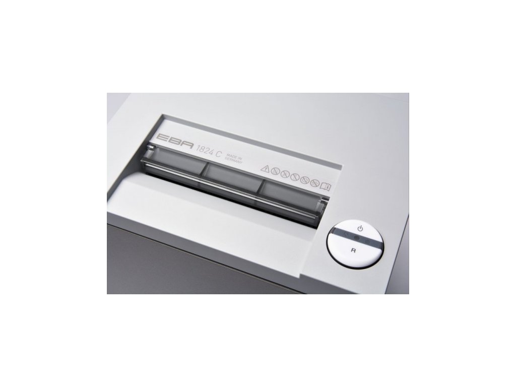 Komfortní obsluha a vysoký výkon jsou vlastnosti modelové řady EBA 1824. Výkonný skartovač se vstupní šířkou 240 mm pro intezivní využití. Nově integrována světelná indikace zátěže stroje. SPS - patentované bezpečnostní a ochranné funkce: elektronicky řízená jistící klapka v místě vstupu, automatický zpětný chod při ucpání papírem a následné vypnutí, automatické vypnutí po naplnění odpadní nádoby, elektronická kontrola uzavření dvířek podstavy, dvoustupňové jištění motoru, úsporný režim "ZERO ENERGY" (absolutní vypnutí odběru el. energie po 30 min ve stavu Stand-by) EASY-SWITCH- vícefunkční přepínač s přehledným menu a barevnou světelnou signalizací provozu a indikací míry zátěže - automatická start/stop funkce pomocí optického senzoru - nože z tvrzené speciální oceli odolné vůči kancelářským sponkám - možnost skartace i CD/DVD nosičů - vysoce kvalitní dřevěná skříňka (objem 50L) s odolným kováním a kolečky pro pojezd - mechanicky odolný snadno uchopitelný plastový odpadní koš objemu 35 L - vyrobeno v NěmeckuDoplňkové parametry