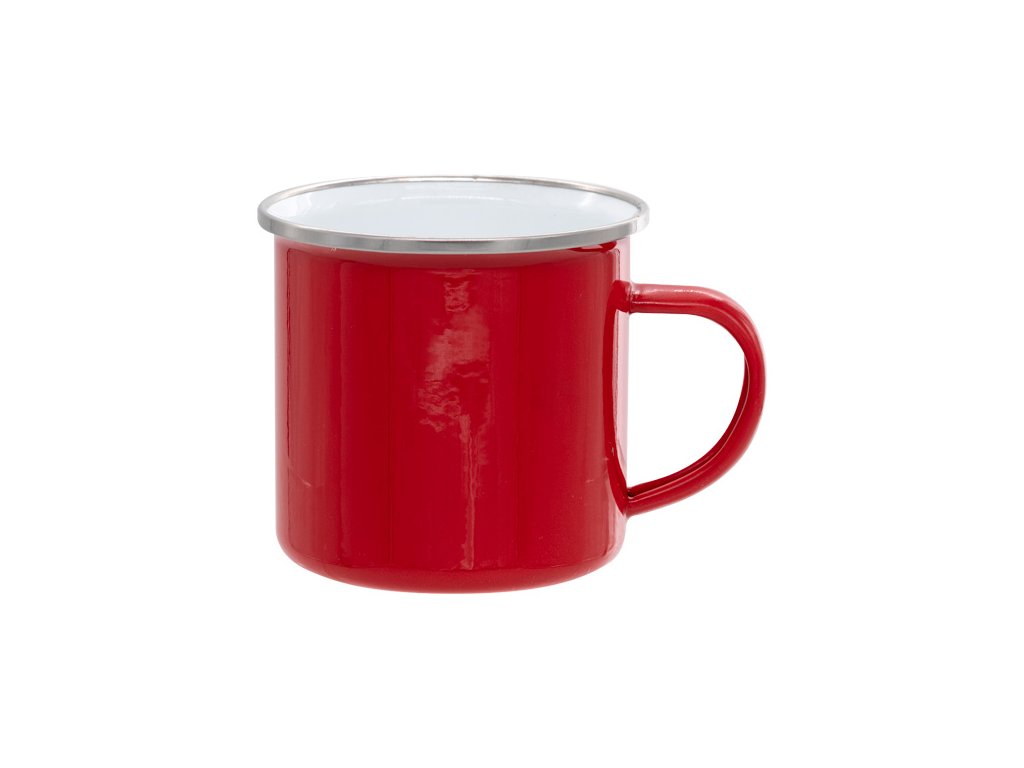 Smaltovaný celobarevný plechový hrnek 12 Oz - červený - stříbrný lem