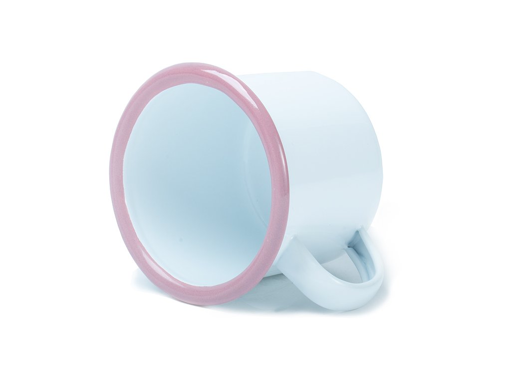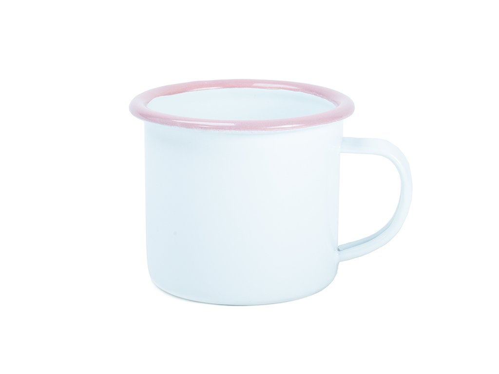 Smaltovaný plechový bílý hrnek 12 Oz - růžový lem
