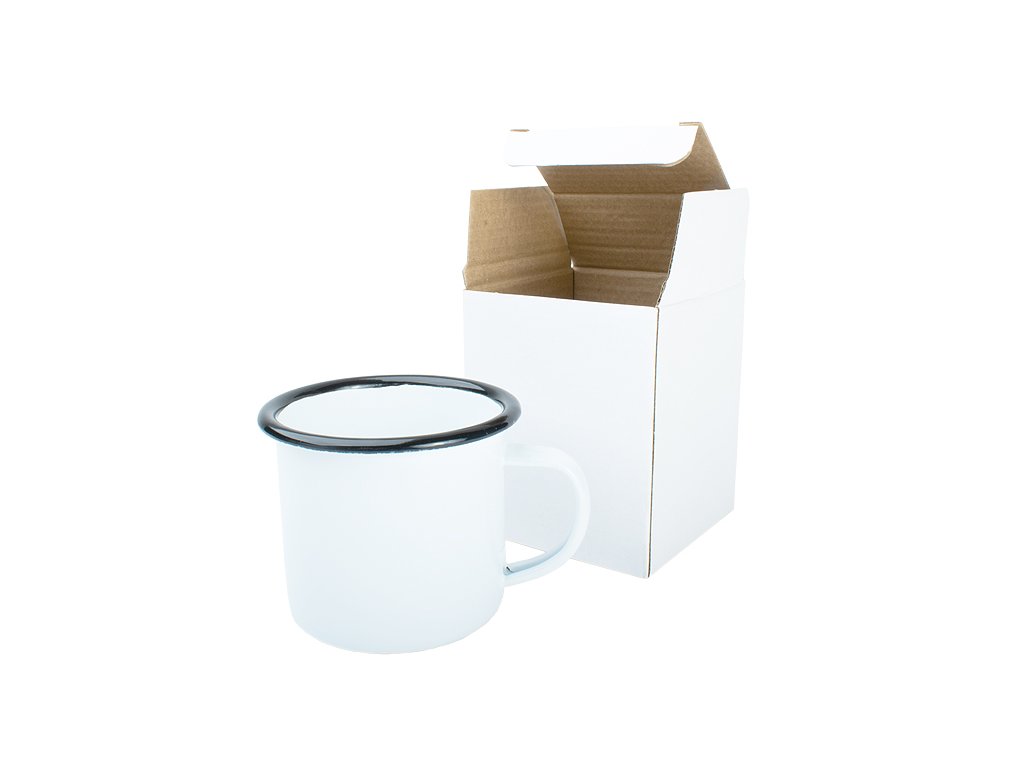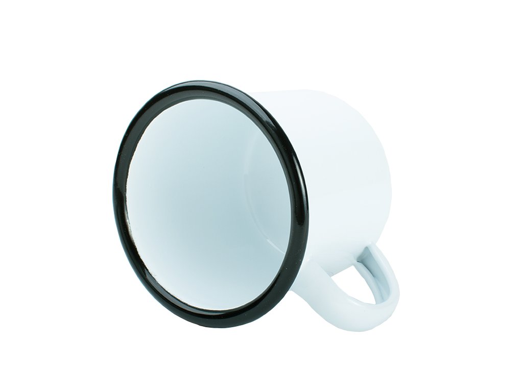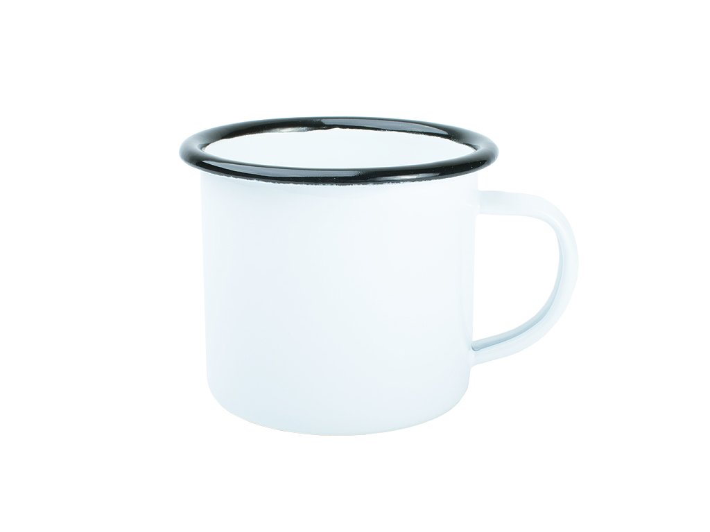 Smaltovaný plechový bílý hrnek SubliT 330 ml - černý lem