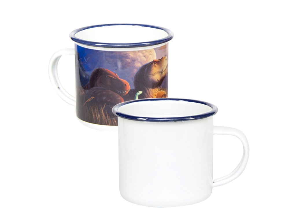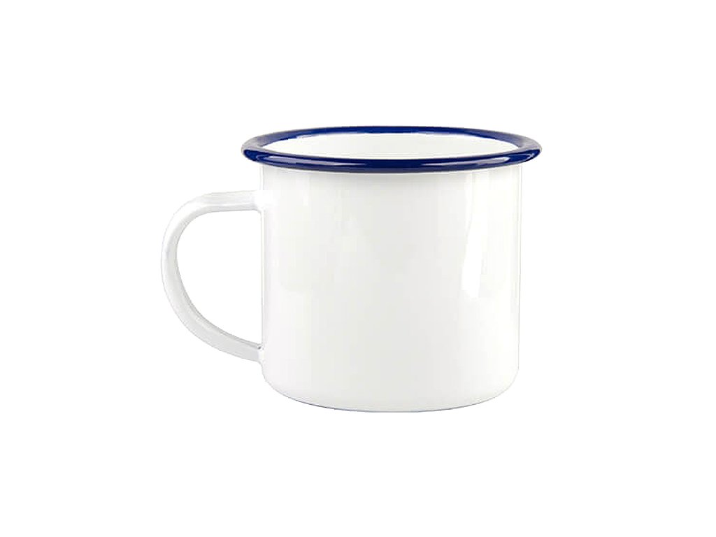 Smaltovaný plechový bílý hrnek SubliT 330 ml - modrý lem