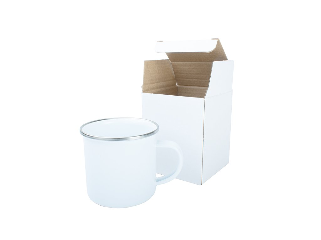 Smaltovaný plechový bílý hrnek SubliT 330 ml - stříbrný lem