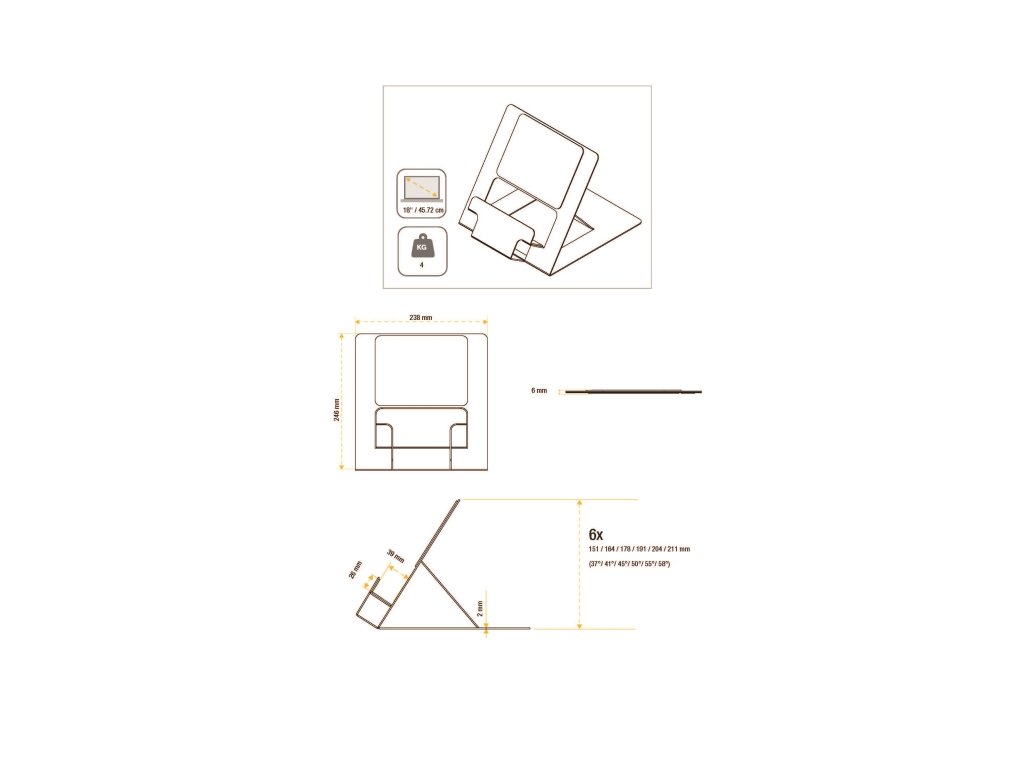 - Minimalistický designový stojan stojan pro notebooky do velikosti 18" a hmotnosti do 4 kg.