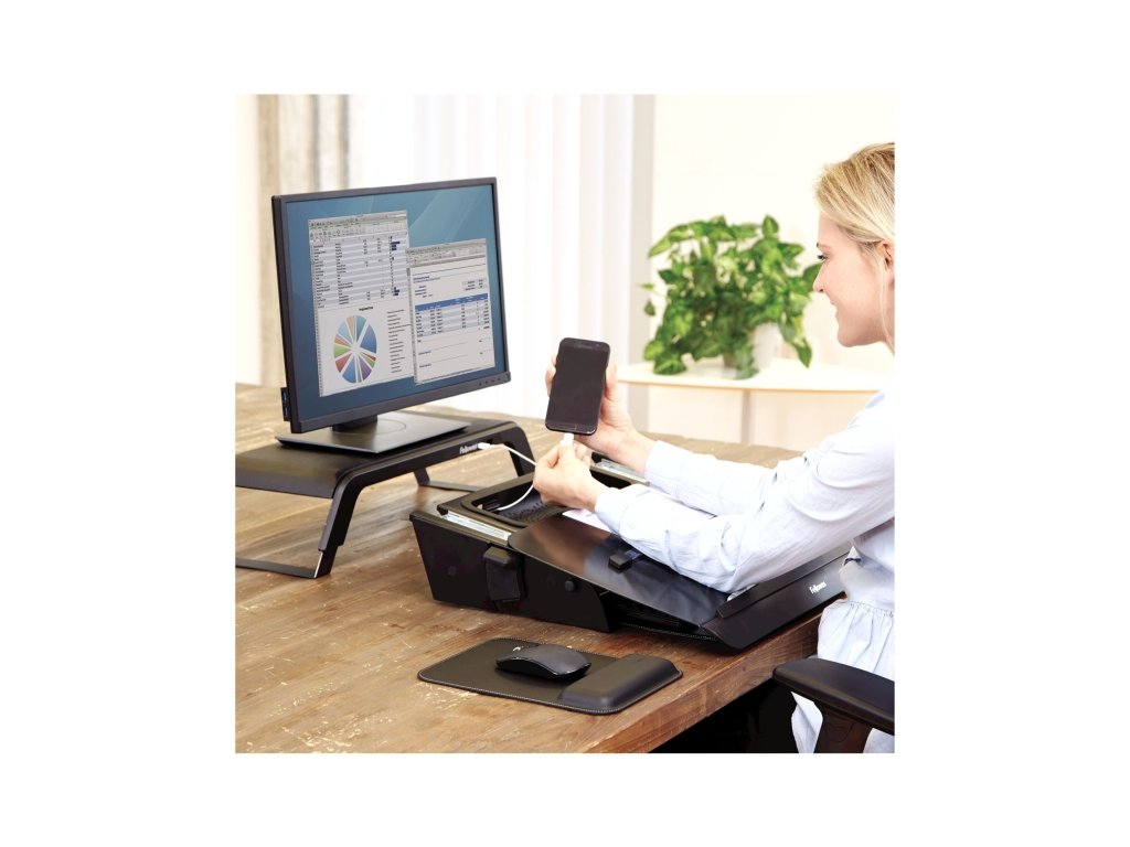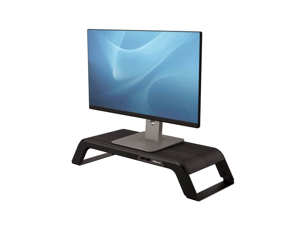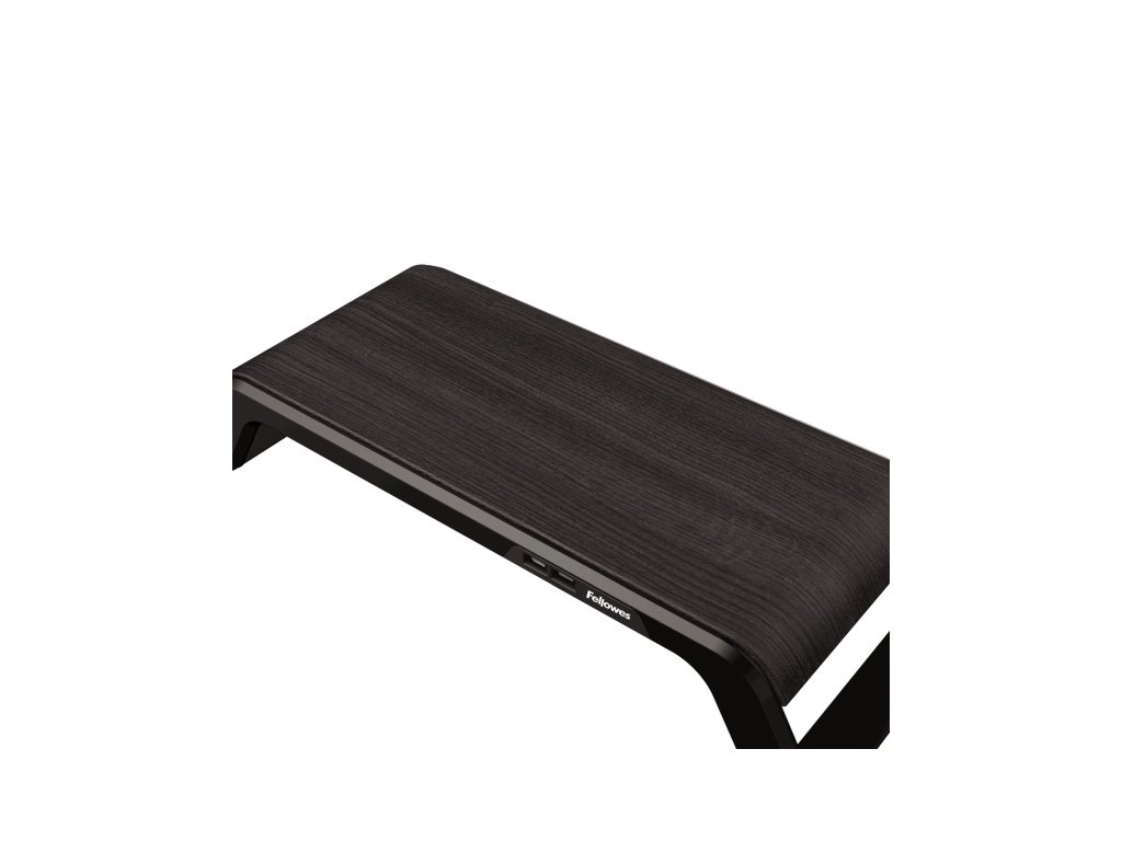 • série HANA™ • moderní minimalistický design • snadné nastavení výšky do 3 poloh: 102, 127, 153 mm • pro monitory do maximální hmotnosti do 18 kg • vybaven 4 USB porty • duální datové porty USB směřující dozadu pro snadné připojení myši a klávesnice • snadná instalace bez nutnosti použití nástrojů • barva černá • materiál kovová základna s povrchem pravého dřeva • rozměr horní plochy (hxš) 194 x 402 mm • rozměry (hxvxš) 222 x 102-153 x 560 mm