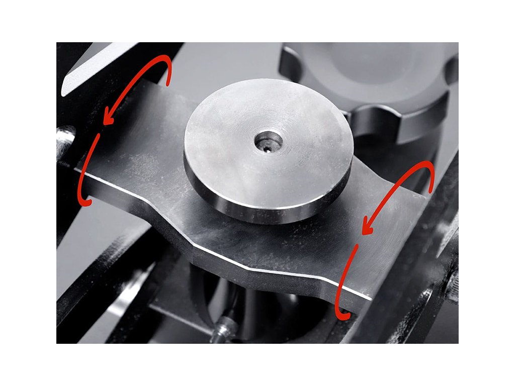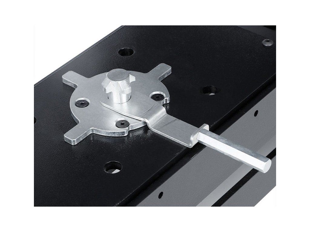 - Systém RAMSPIN: jednoduché přepínaní mezí automatickým a manuálním otevíráním lisu a výměna pracovních desek včeně vertikálního otočení