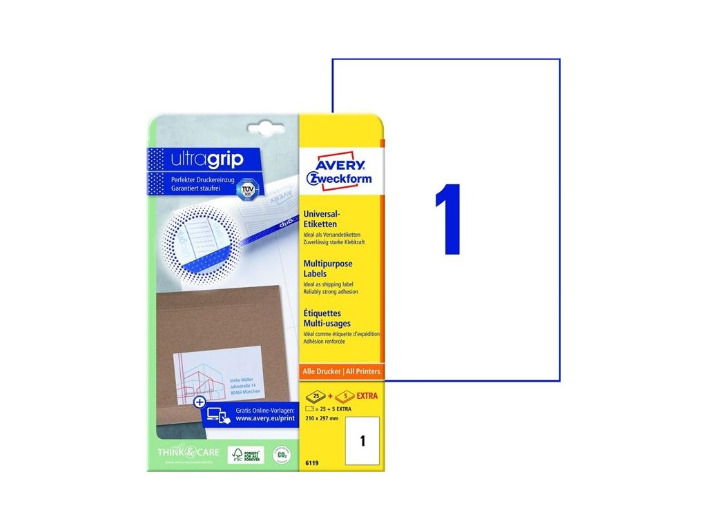 Univerzální etikety Avery, bílé,210 x 297 mm, 30 ks