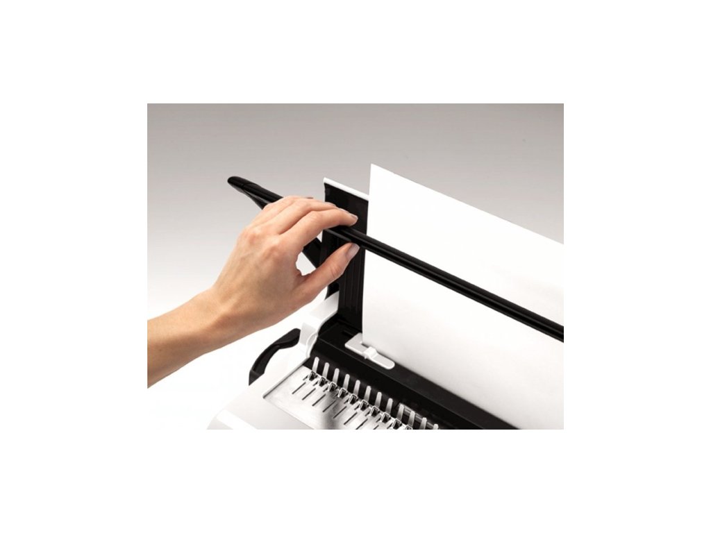 Druhý mechanický model designově i funkčně velmi zdařilé řady vázacích strojů Fellowes. Kapacitně vhodný jako osobní vazač pro kancelářské použití. Děrovací kapacita až 15 listů 80 g papíru. Kapacita vazby až 150 listů (do velikosti hřbetu 19 mm). Oddělená ergonomická děrovací a vázací páka pro průběžné vkládání děrovaných listů do plastového hřbetu výrazně zefektivňuje práci. Vkládání děrovaných listů shora pro snadné setřesení a tím bezchybnou perforaci. Stroj je vybaven zásobníkem na uložení několika plastových hřbetů a integrovanou měrkou pro správnou volbu průměru hřbetu. Na čelní straně stroje je průzor pro snadnou kontrolu zaplnění odpadního prostoru.Doplňkové parametry