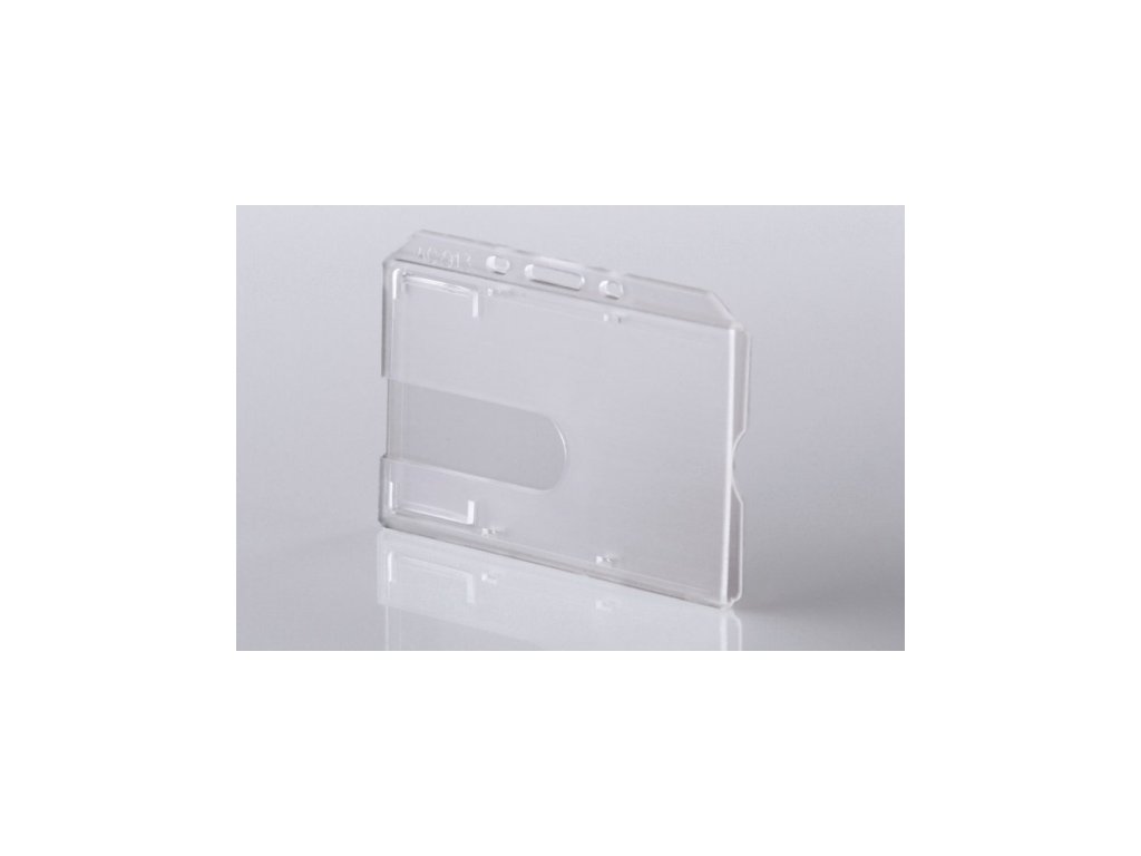 Tuhá plastová visačka pro magnetické karty - vodorovná, provedení z průhledného polomatného plastu. Výhodou visačky je výsek pro snadné čtení kódu, má zaoblené hrany. Možno zavěsit na klips se šlí (v našem sortimentu klips Americký, nebo klips Evropský), šňůrku nebo naviják. Oválný výsek pro zavěšení 15x3 mm + dva kulaté výseky. Vnější velikost: výška 63 mm x šířka 90 mm x hloubka 4 mm.Doplňkové parametry