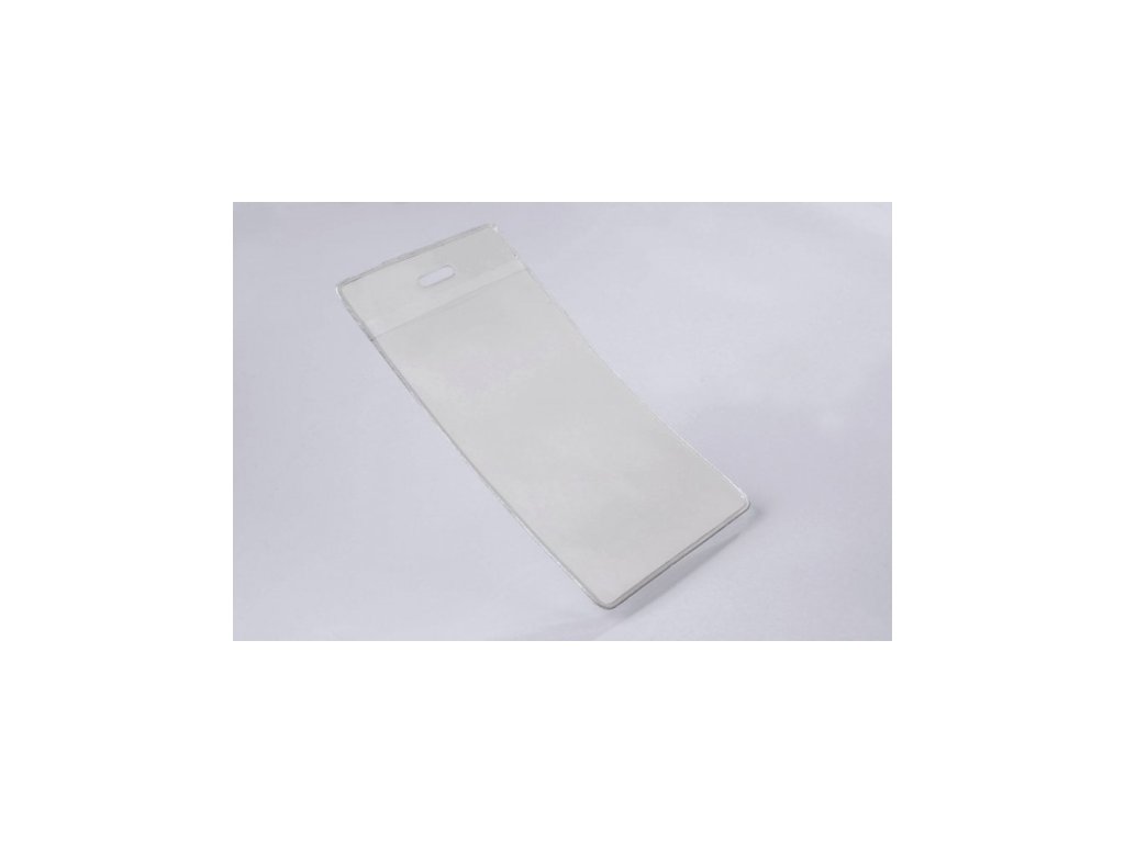 Čirá visačka z měkčeného PVC – svislá. Výhodou visačky jsou zaoblené rohy a snadná ohebnost. Možno zavěsit na klips se šlí (v našem sortimentu klips Americký, nebo klips Evropský), šňůrku nebo naviják. Oválný výsek pro zavěšení 15x3 mm. Vnější velikost: výška 110 mm x šířka 65 mm.Doplňkové parametry
